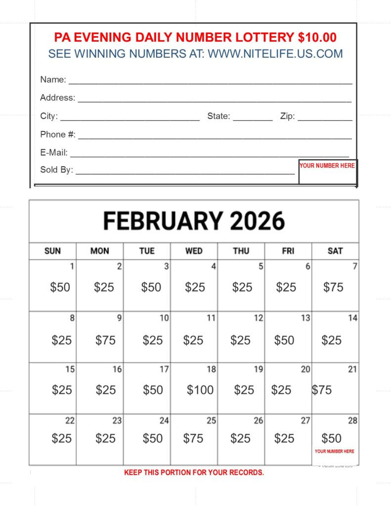PA Lottery Calender